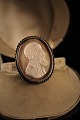 Gammel kamé vedhæng med herre portræt udskåret i Konkylie og indfattet i sølv.