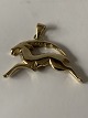 Pendant 14 carat gold, shaped like a dolphin with blue sapphire