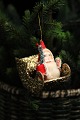 Gammel juletræspynt i form af julemanden i guldkane. . .