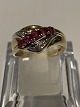 Gold ring in 14 carat gold, with red ruby ​​and diamonds. Size 51.