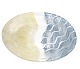 Et sæt på fire kunstglastallerkner i orange og hvidt glas.