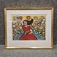 Farvelitografi af Frans Kannik 1998 - Erotisk komposition med gravid kvinde.