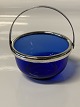 Blå sukkerskål med hank i pletsølv, stemplet M&TB. Flot lille skål.