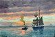 I E C Rasmussen parti fra Grønland med skib, isbjerge og solnedgang. Jens ...