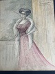 Akvarel af Erick Struckmann - Dame i aftentoilette ca. 1910 "Torbenfeldt".