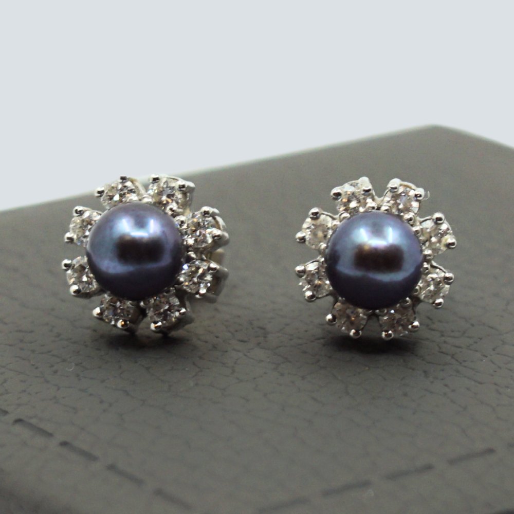 C. Antonsen; Pair of earrings of 18k white gold set with pearl and diamonds