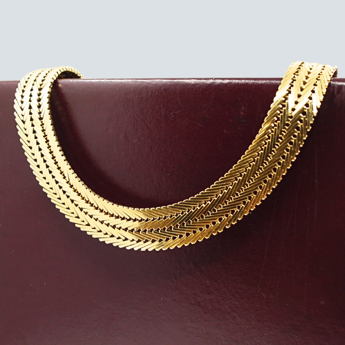 A wide Danish geneve necklace of 14k gold. Clasp with two safety catches.