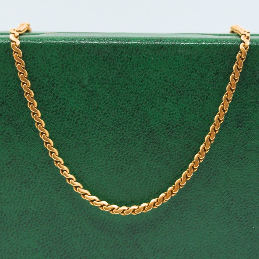 A necklace in 18k gold. L. 56 cm. W. 3 mm. Stamped "750" Please contact us if you're looking for anything specific. What you see on our webside is just a small selection.