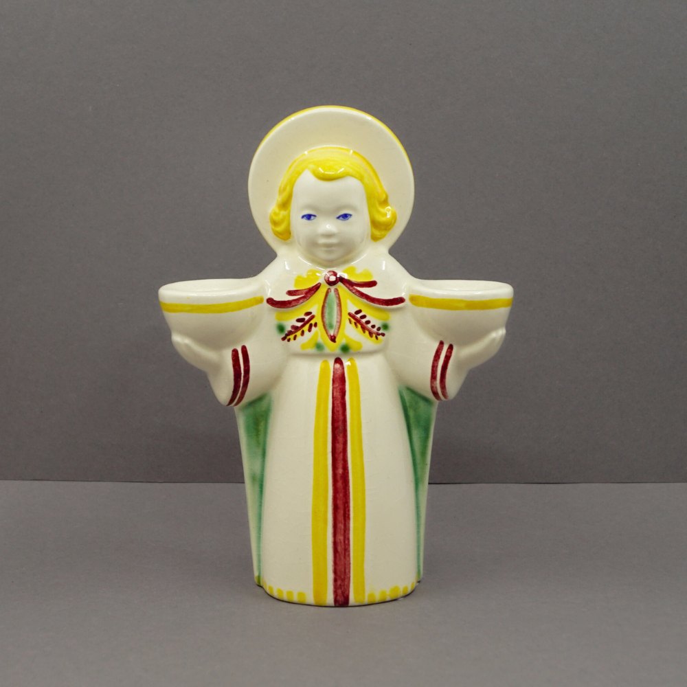 Aluminia; Christmas angel in faience. For two candles. H. 13.5 cm. Aluminia faience Denmark. Please contact us if you're looking for anything specific. What you see on our webside is just a small selection.