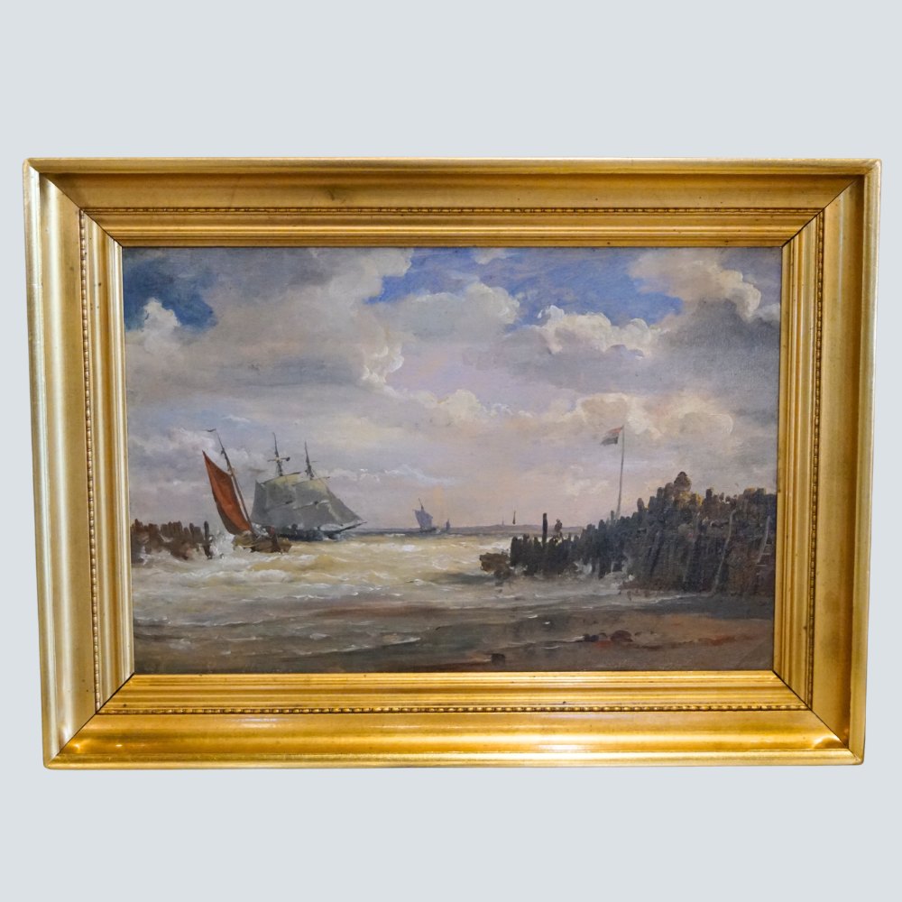Marine painting by Carl Frederik Sørensen, Holland, 1853. Oil on canvas. Signed "C. F. Sørensen 1853".