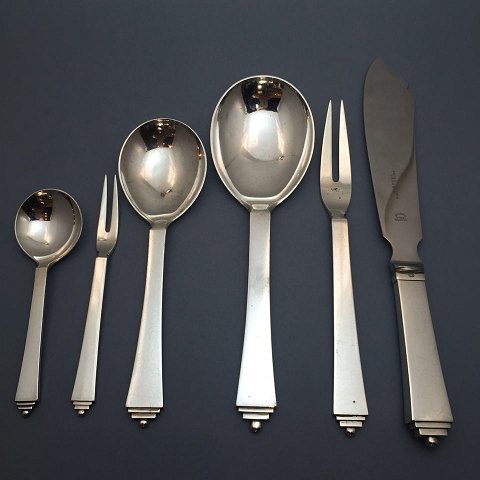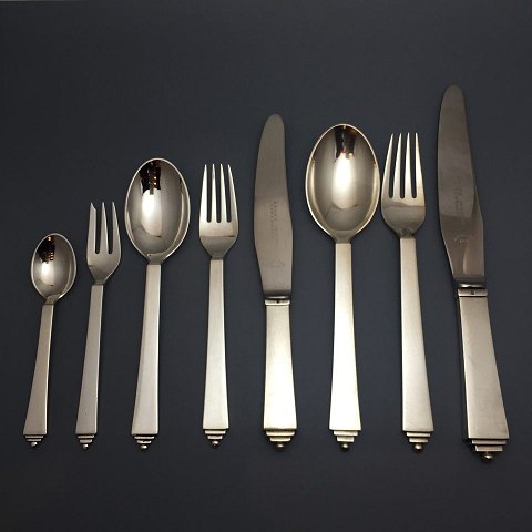 Georg Jensen, Harald Nielsen; Pyramide sølvbestik komplet til 12 pers. 107 dele