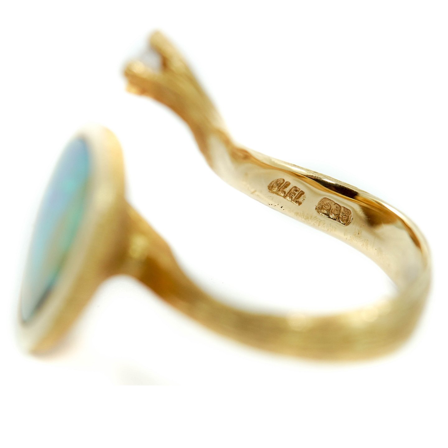Ole Lynggaard jewellery. A ring in 14k gold with an big opal and a diamond. Design Ole Lynggaard. Stamped "Ole L. 585".