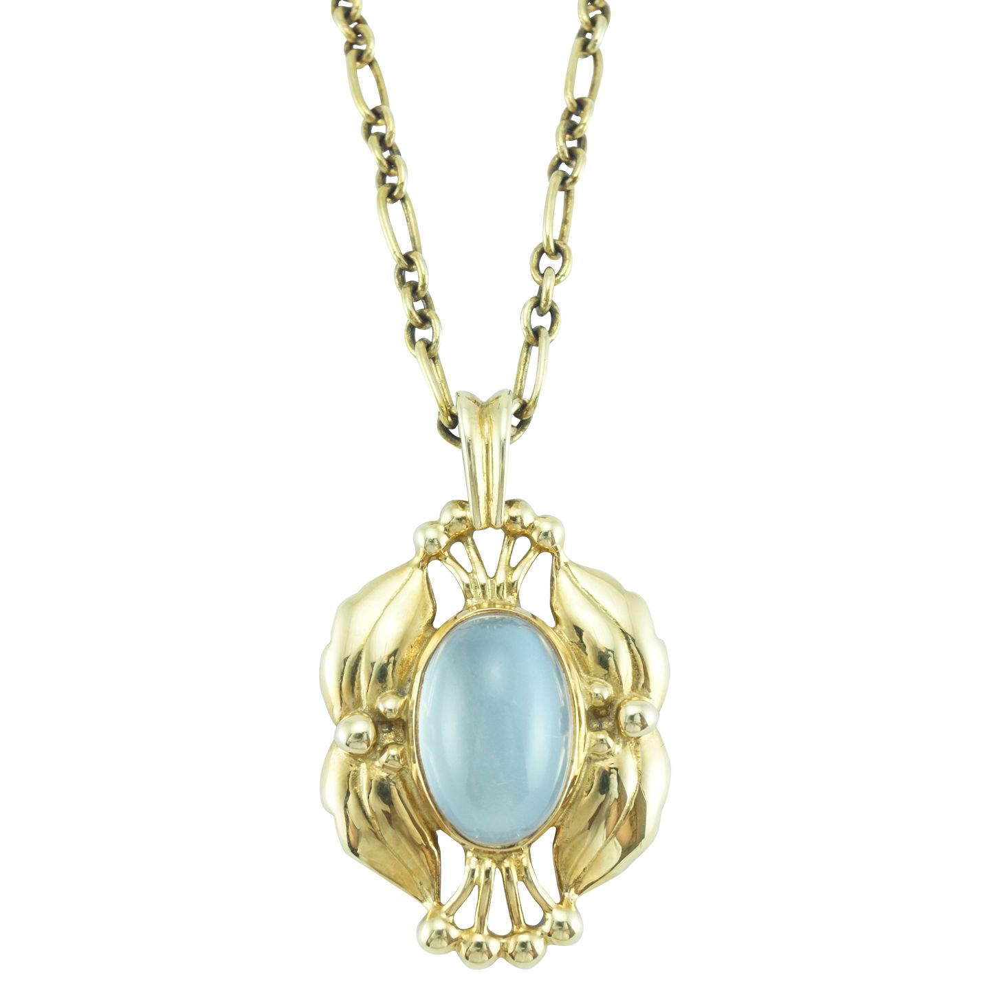 Georg Jensen; Heritage jewellery 2000. Made of 18k gold set with moonstone. Pendant with original necklace, l. 45,5 cm.