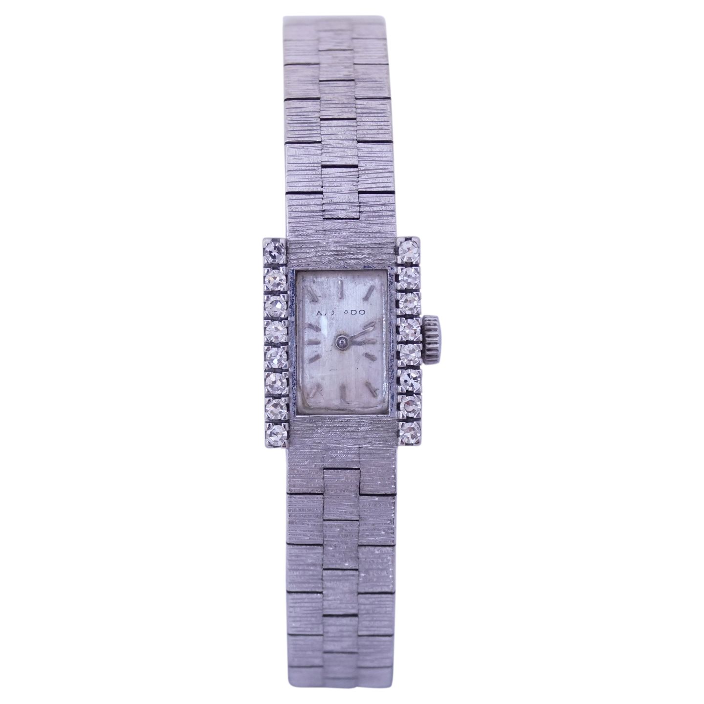 Movado; Dameur af 18 kt. hvidguld, prydet med diamanter. I alt 16 diamanter.