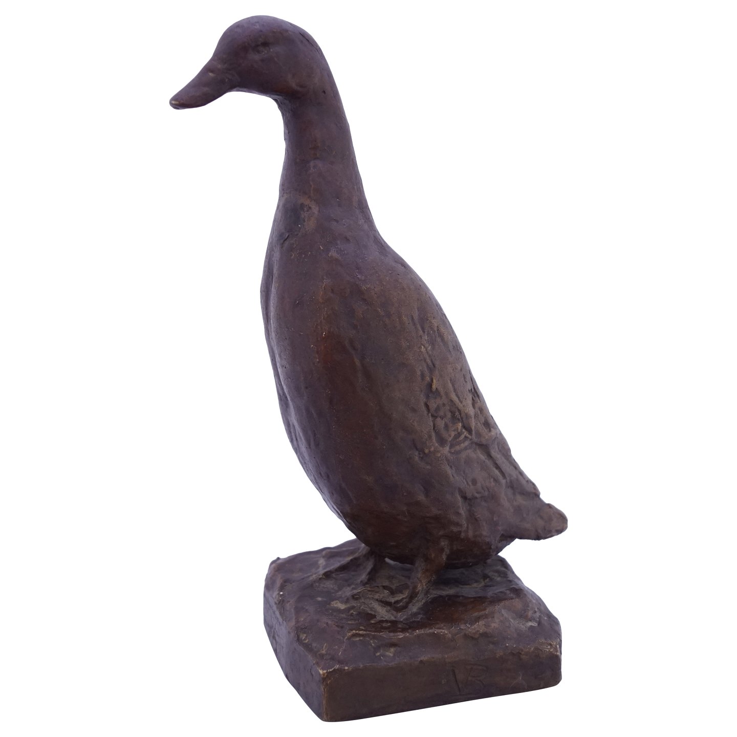 Wilhelm Bissen; A bronze figurine. A duck. H. 18 cm.