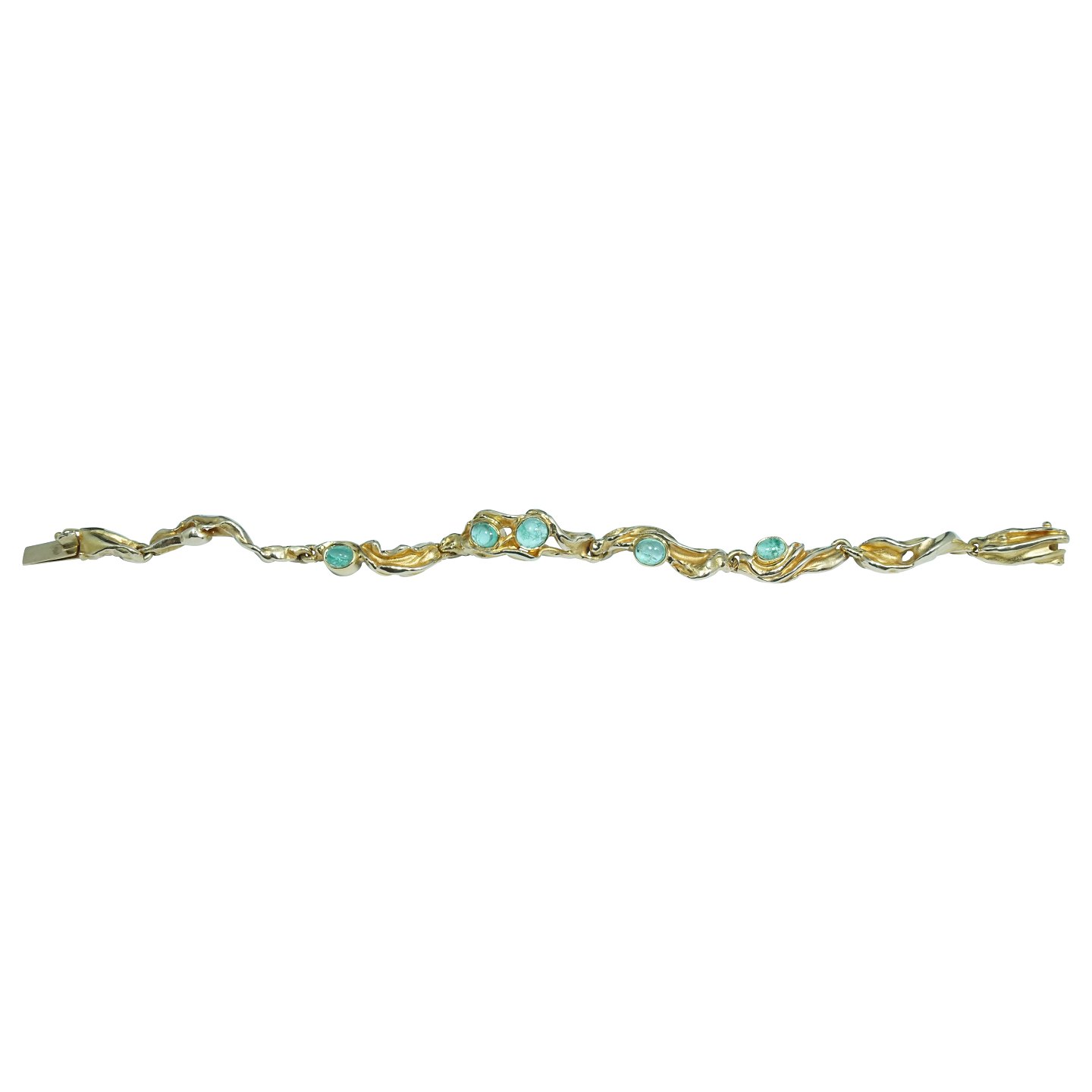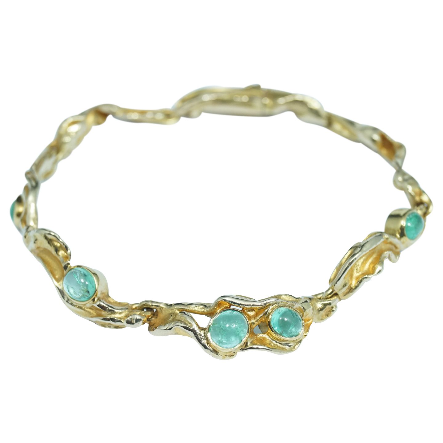A bracelet of 14k gold set with five emeralds. Stamped "CA 585".