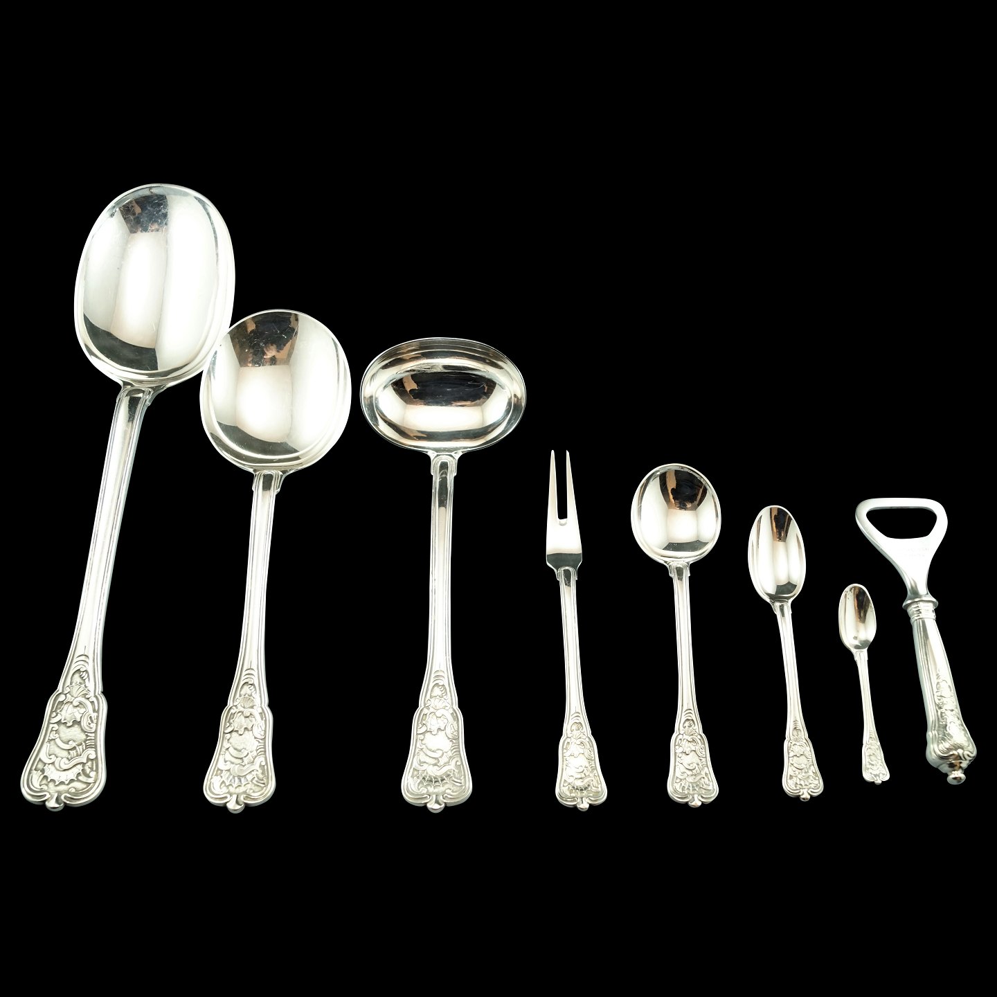 Bestik af sterling sølv til 12 personer. I alt 84 dele,