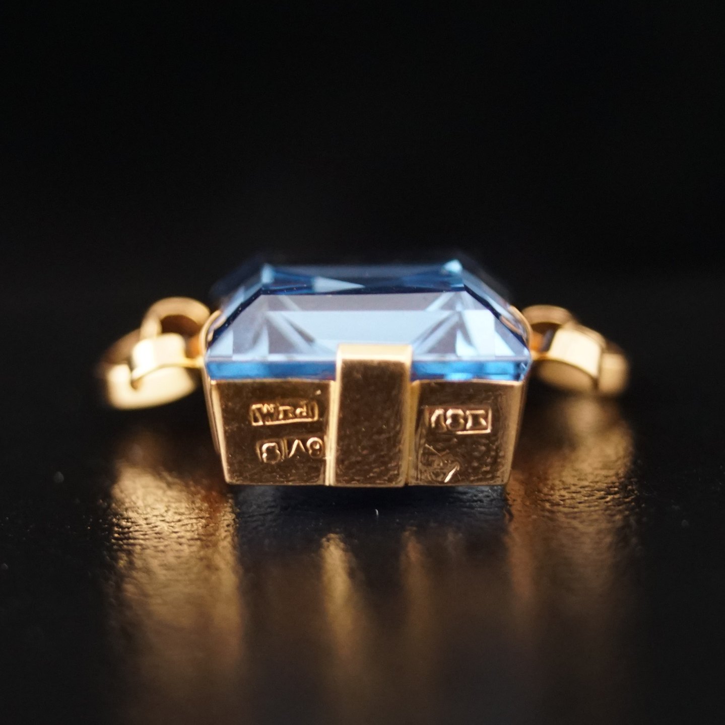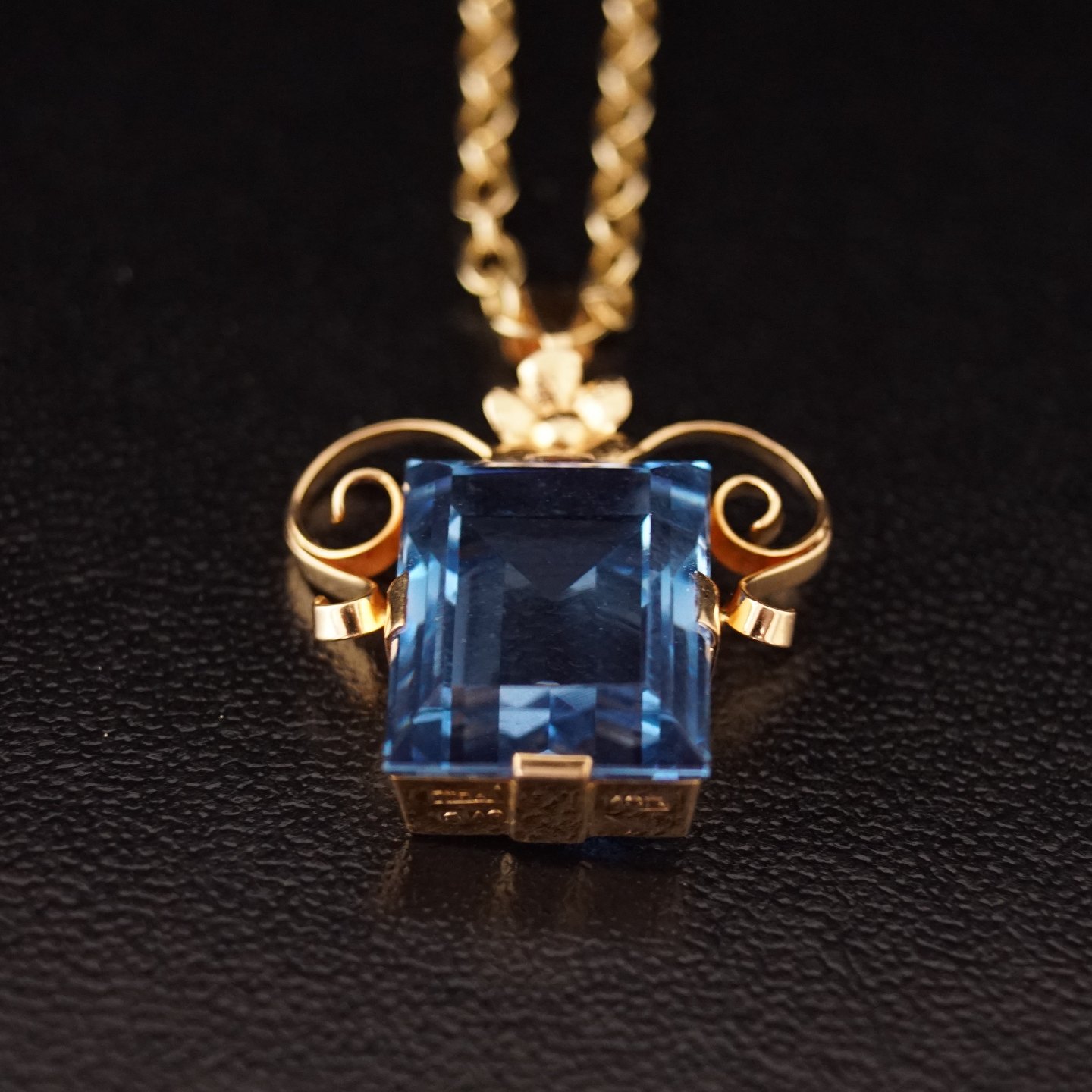 Necklace in 14k gold and pendant with a blue topaz 18k gold.From Sweden 1959. L. 50 cm.