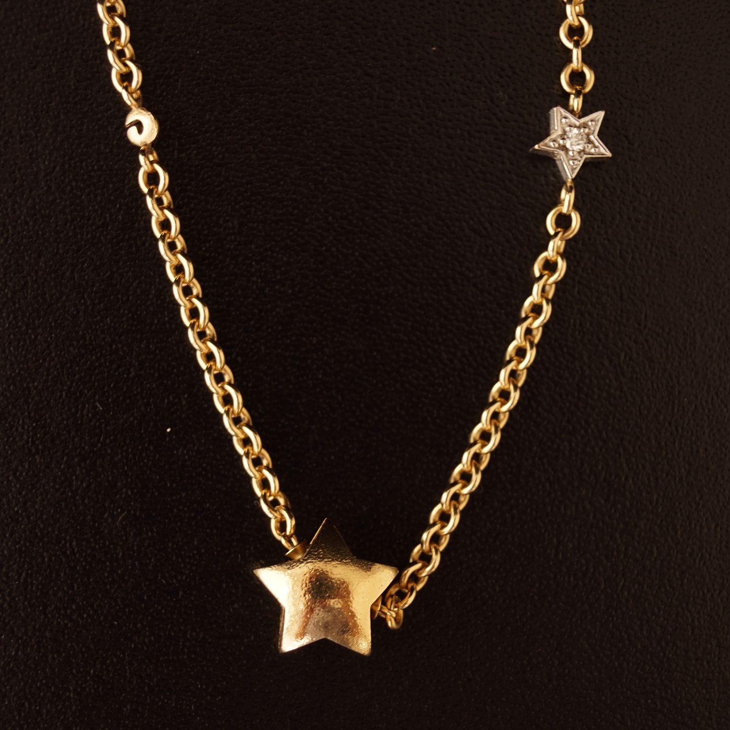 Ole Lynggaard; necklace in 14k gold with star shaped lock and a star shaped pendant with two diamants