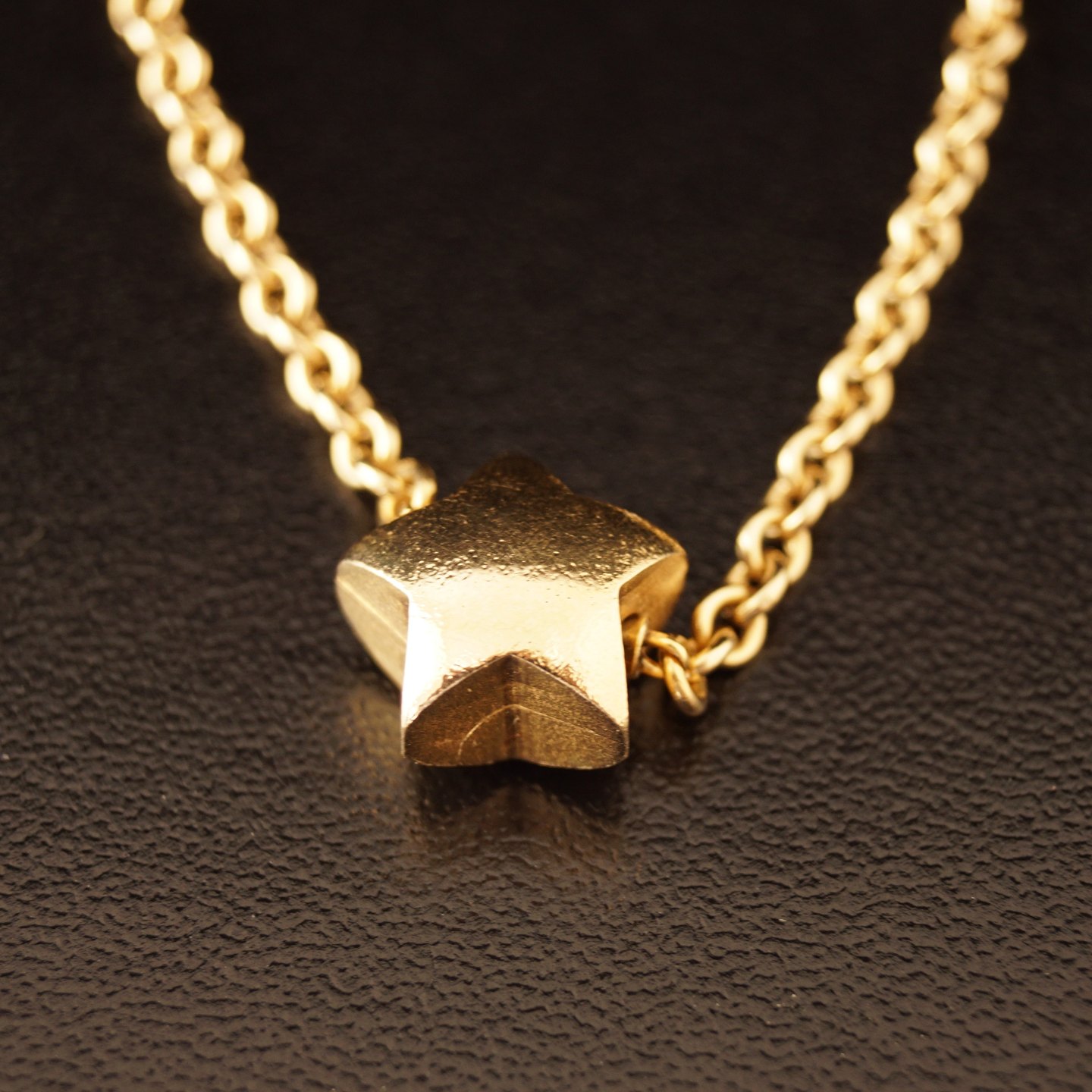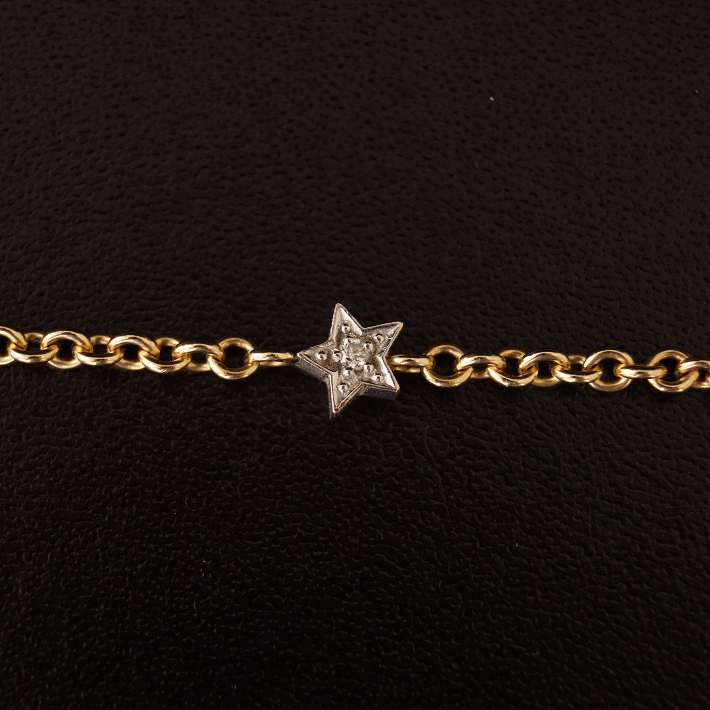 Ole Lynggaard; necklace in 14k gold with star shaped lock and a star shaped pendant with two diamants 0,10 ct. Top Wesselton. VS. 44 cm. Designed by Ole Lynggaard. Danish design jewellery.