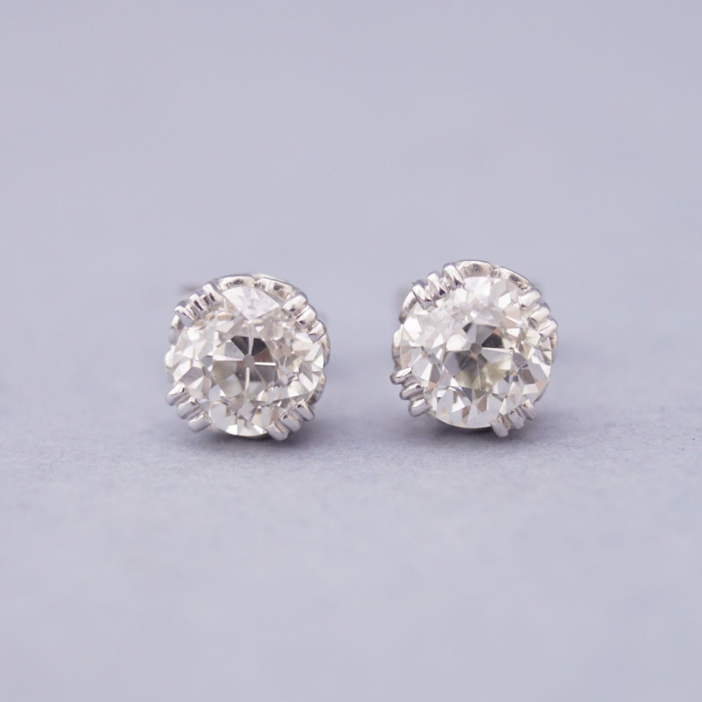 Et par 14 kt. hvidguldsøreringe med 1 større brillant i hver, i alt ca. 2,50 ct.