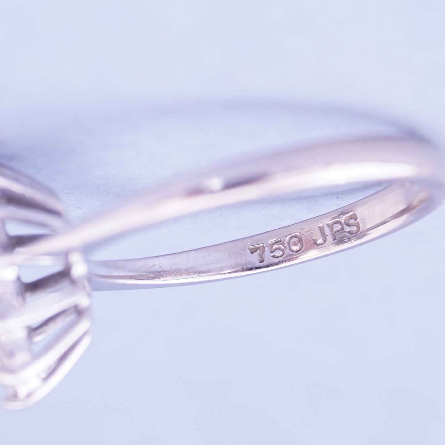 A 14 kt. white gold ring with a sapphire and wreathed with diamonds. Ring size 51½.