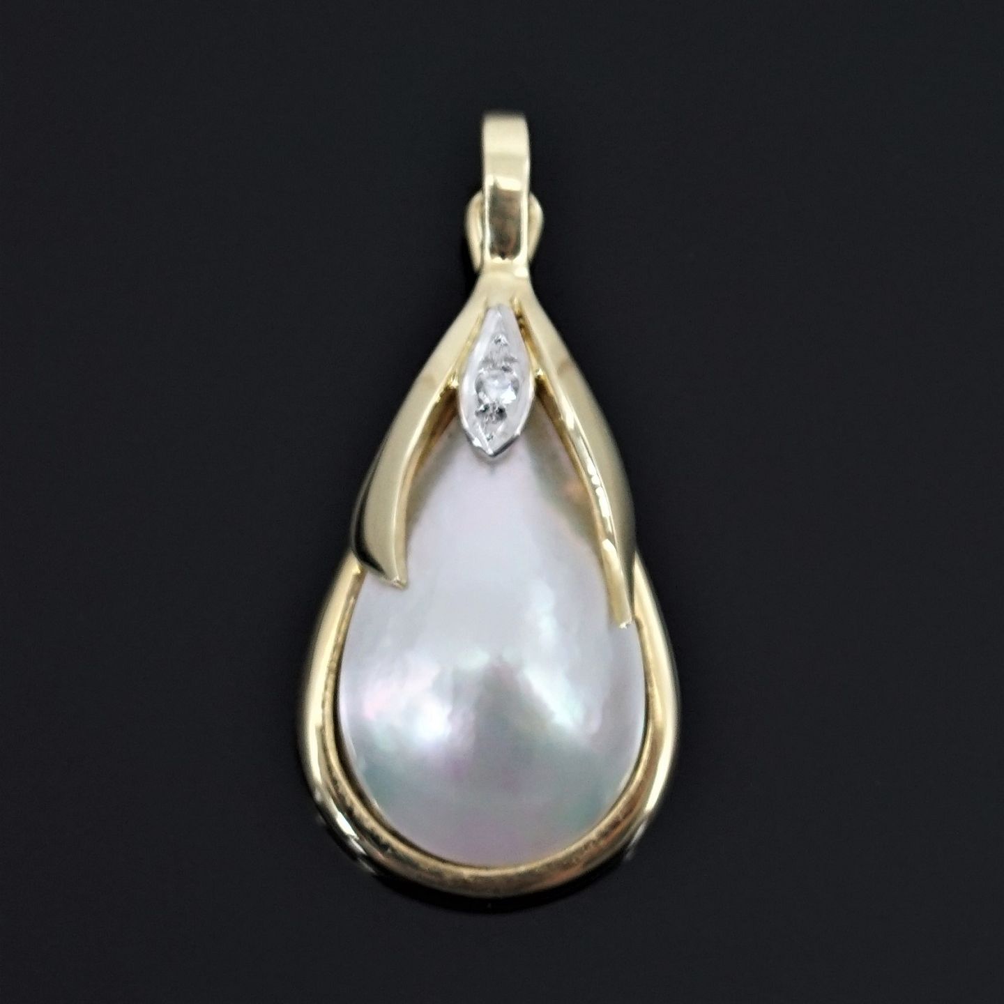 A pendant of 14k gold and white gold set with a mabé pearl and diamond