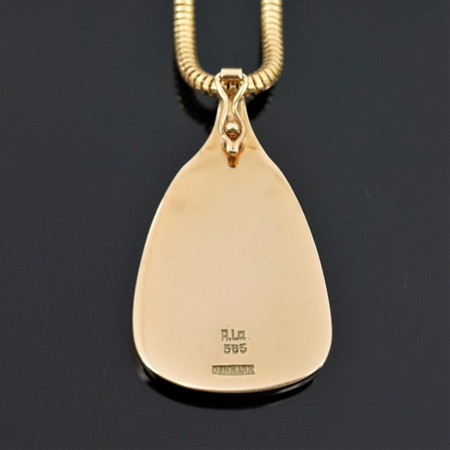 Allan Børge Larsen; A necklace set with an opal, mounted in 14k gold. Stamped "A.La. 585 Denmark".