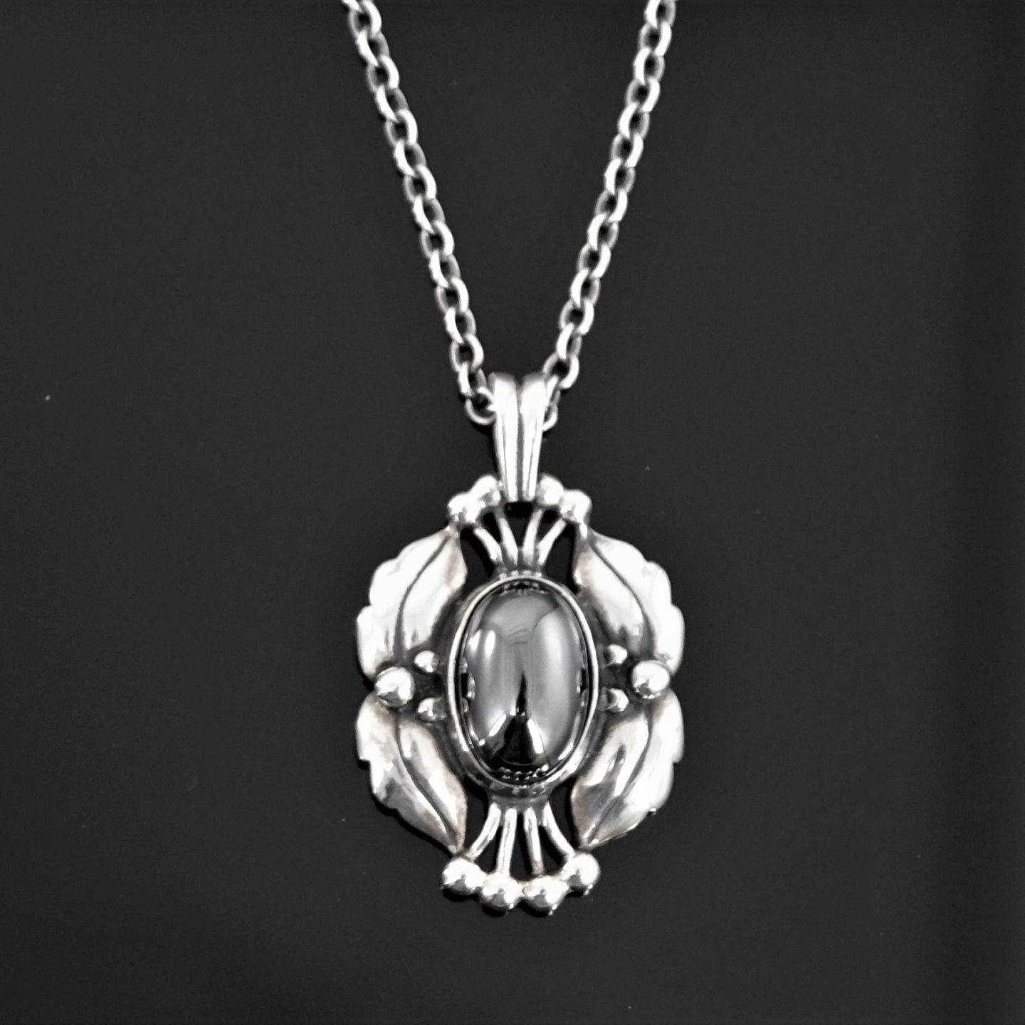Georg Jensen; Heritage jewellery 2000. Made of sterling silver set with a hematite. Pendant with original necklace l. 45 cm.