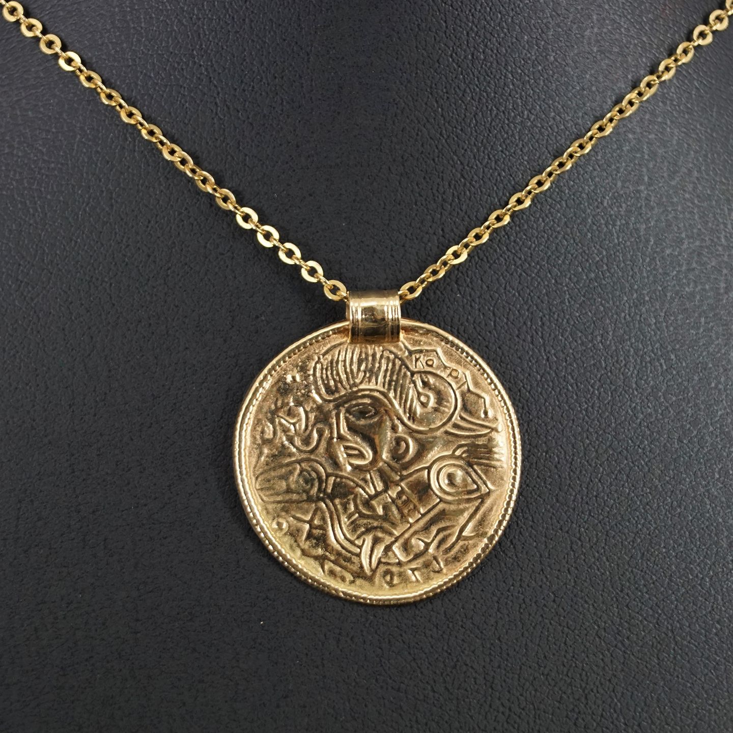 A Museum Kopi-jewllery; A necklace set with a bracteate pendant of 14k gold