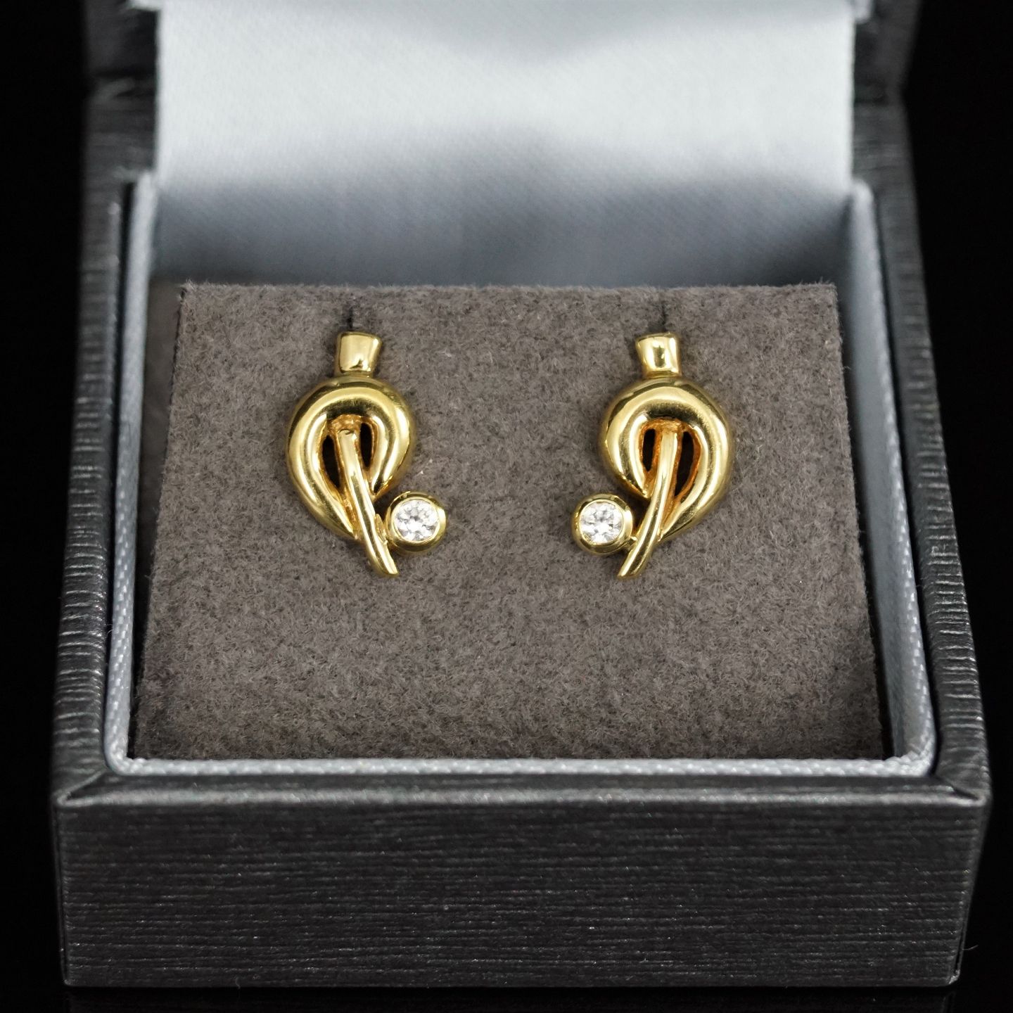 A pair of earrings, set with zircon, mounted in 8k gold.