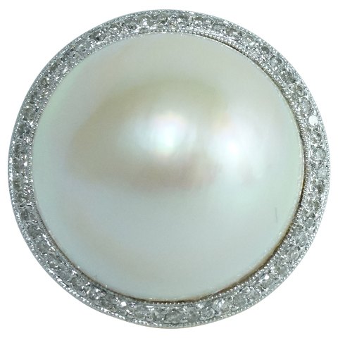 A pendant of 18k gold, set with a big mabé pearl and diamonds, mounted in white gold.