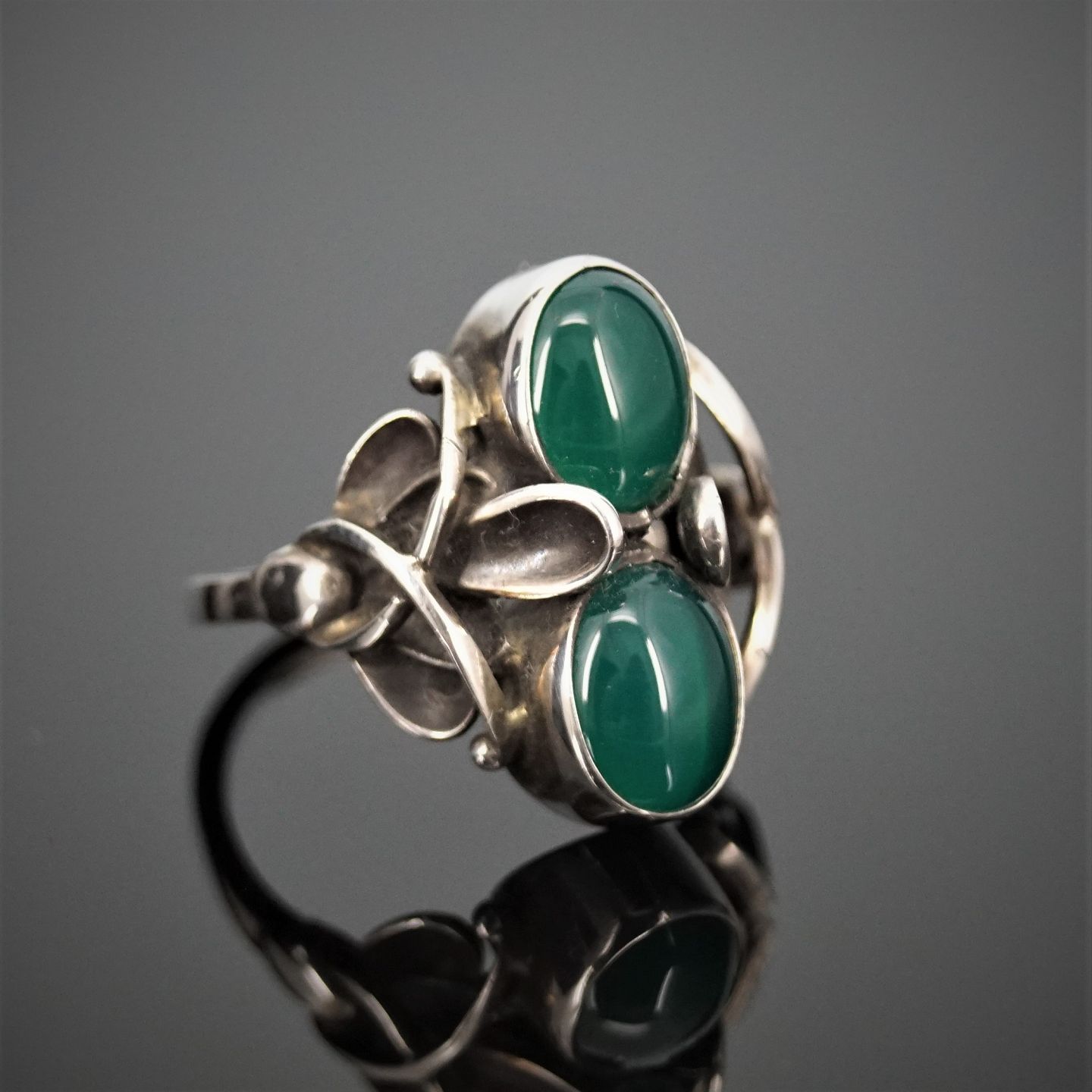 Georg Jensen; Moonlight Blossom ring made of sterling silver set with chrysopras.
