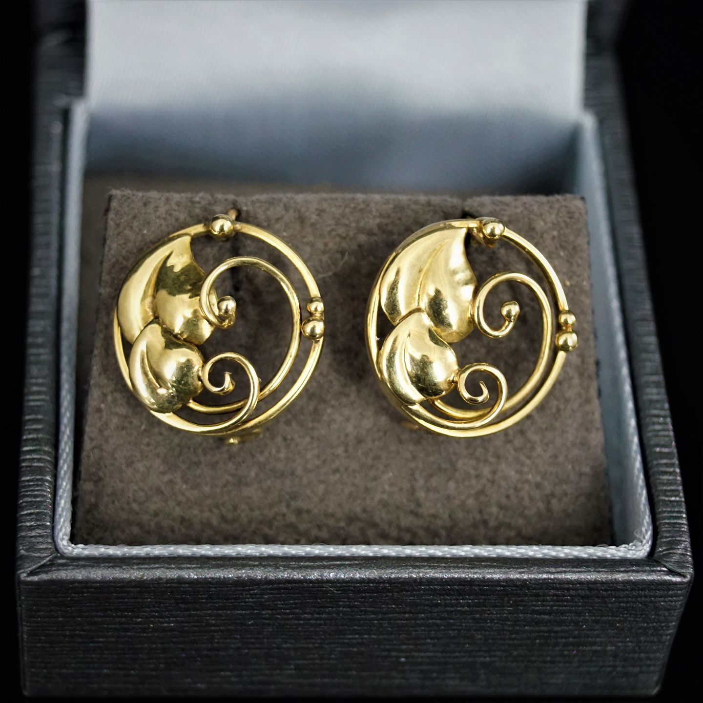 A pair of earrings in 14k gold. Diam 1,5 cm.
