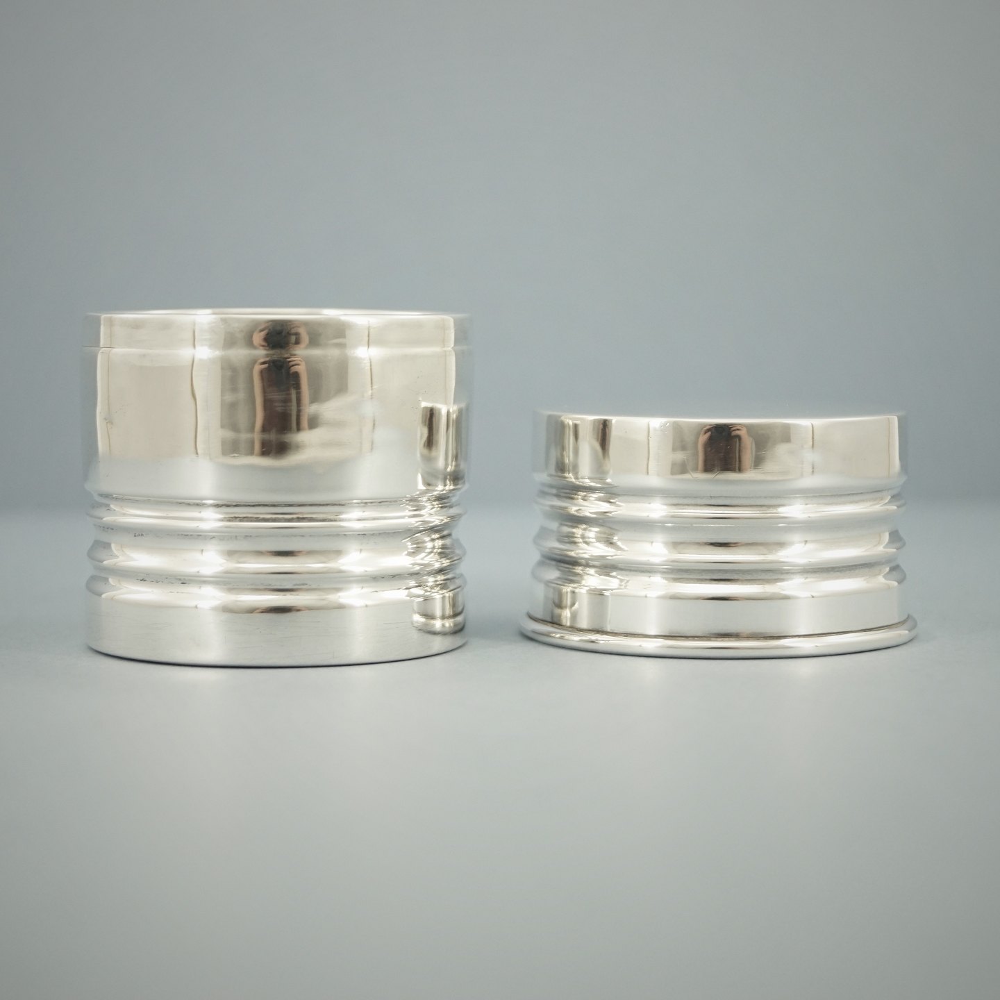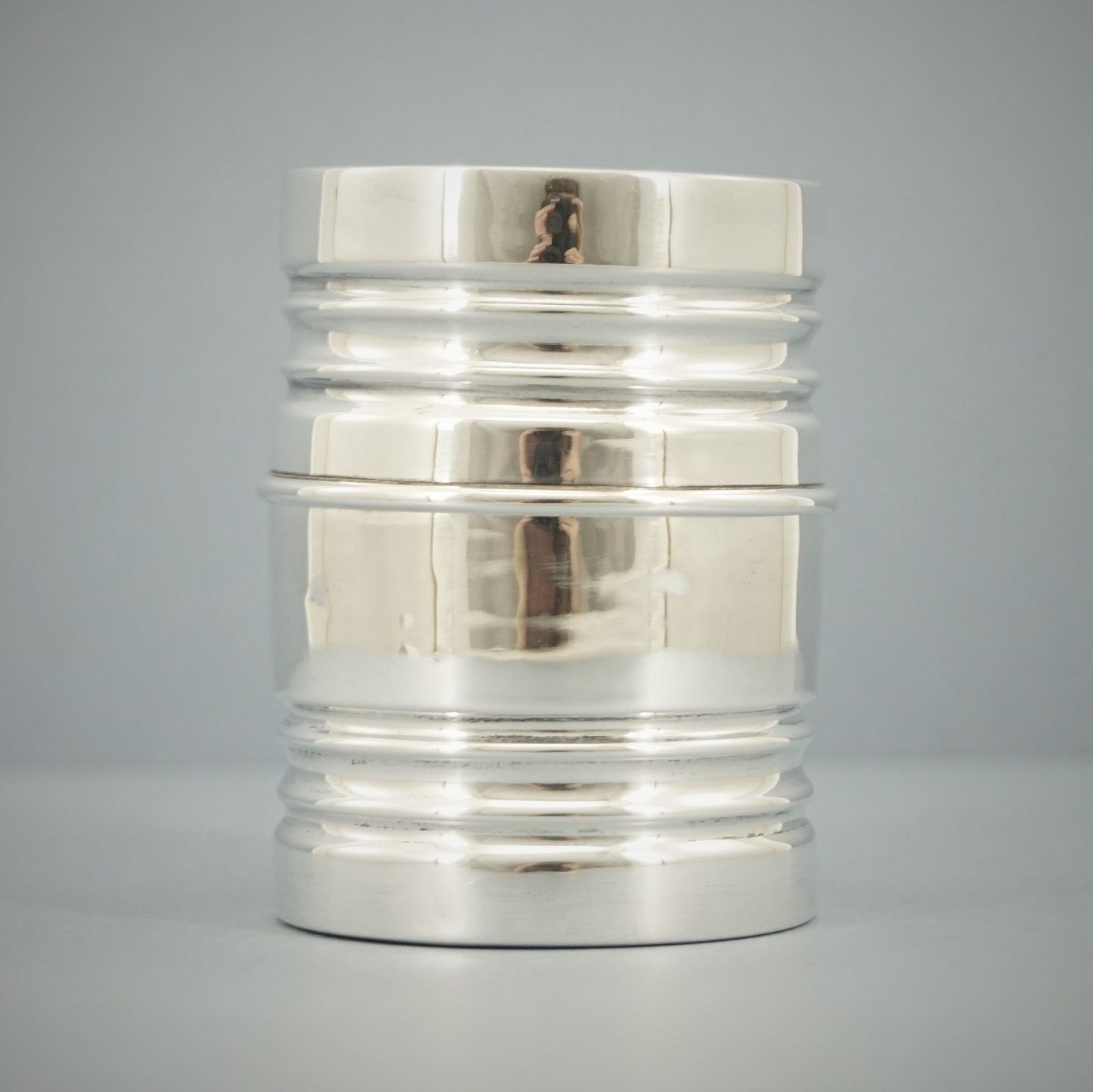 A cylindrcal art deco bin made in hallmarked silver, 1932
