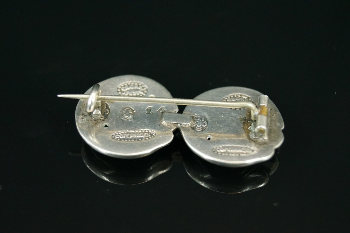 Georg Jensen; Broche af sølv #14, prydet med koraller.