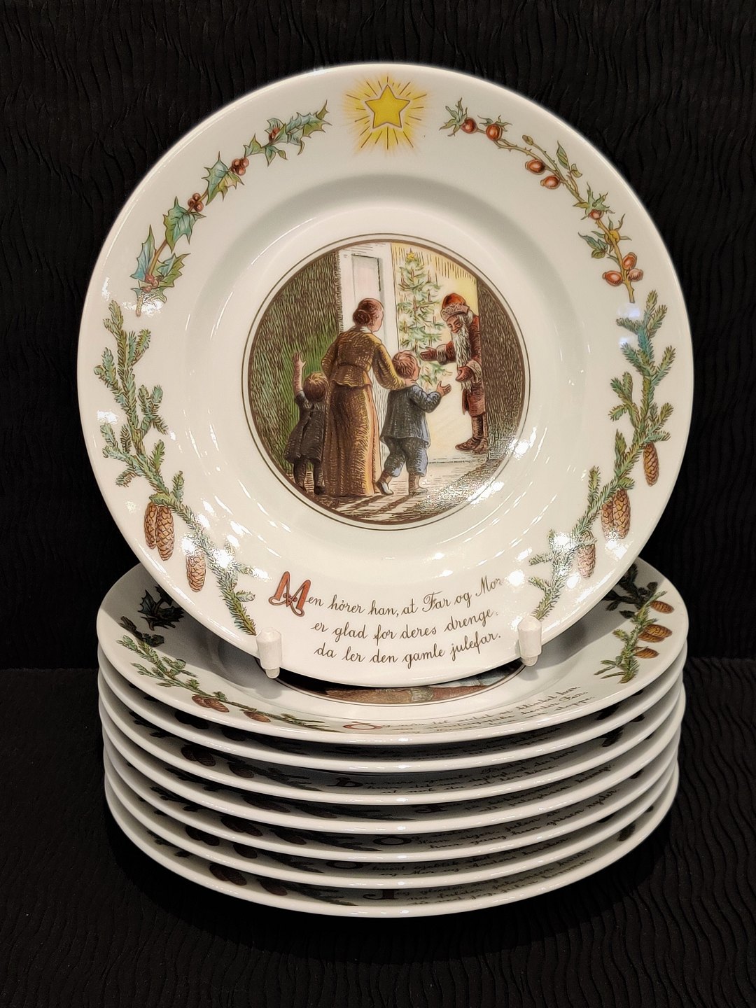 Royal Copenhagen; "Peters Jul" 8 Christmas cake plates of porcelain, original box