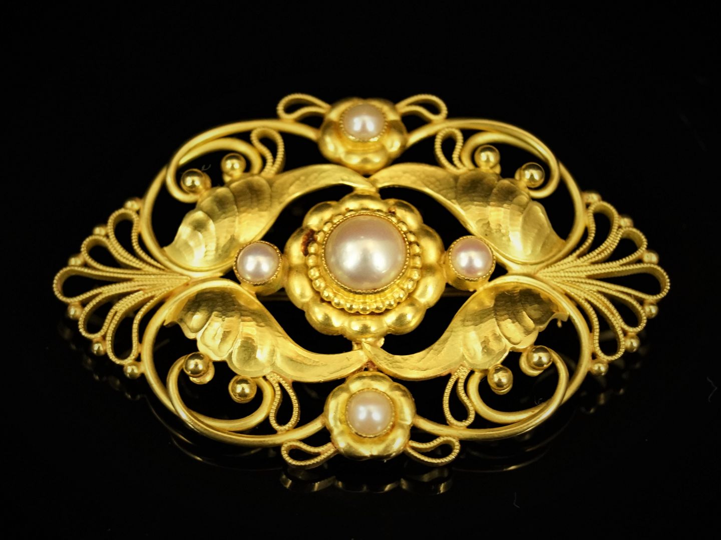 Georg Jensen; A 18k gold brooch set with pearls #19.