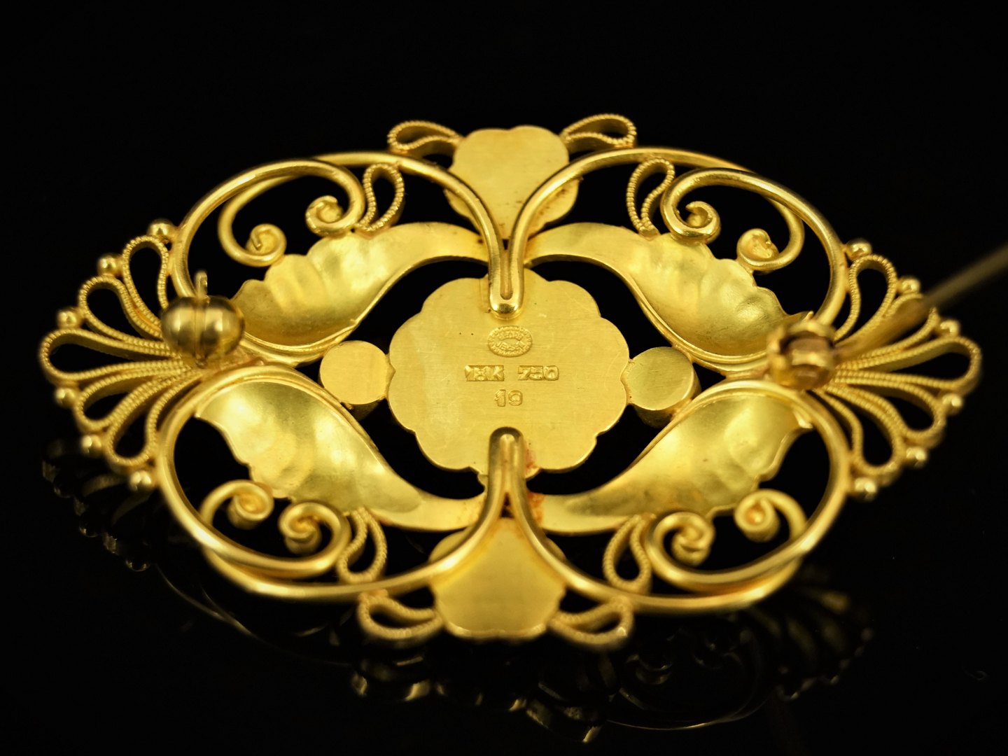 Georg Jensen; A 18k gold brooch set with pearls #19