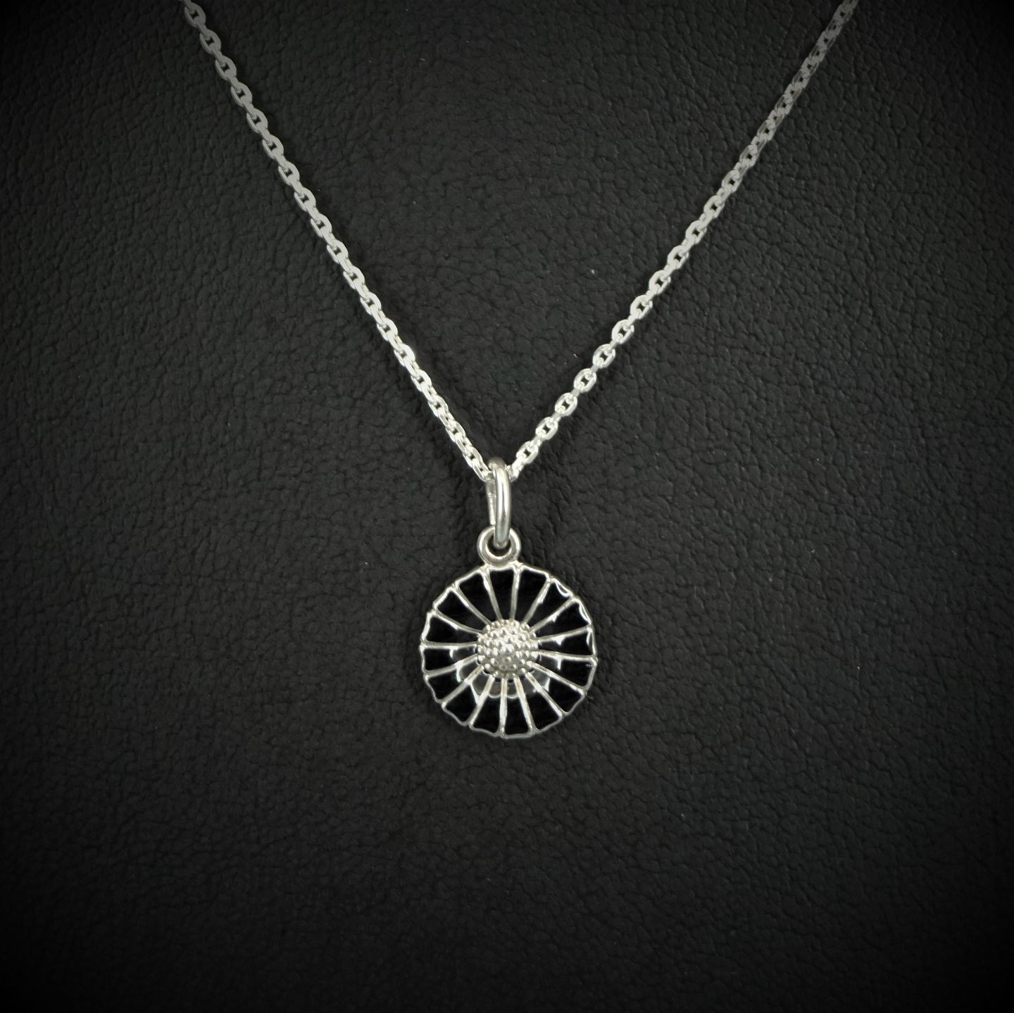 Georg Jensen; A Daisy necklace, made of sterling silver and black enamel. Necklace l. 45 cm.