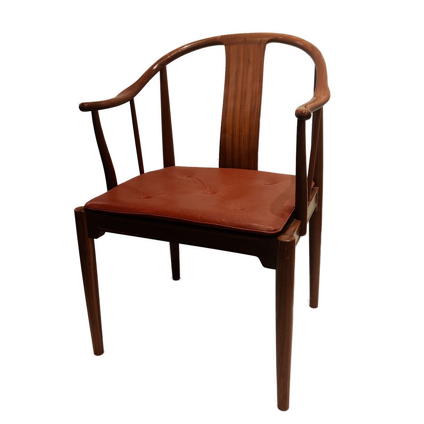 Hans J. Wegner; PP66 Kinastolen i kirsebærtræ med rødligt læder