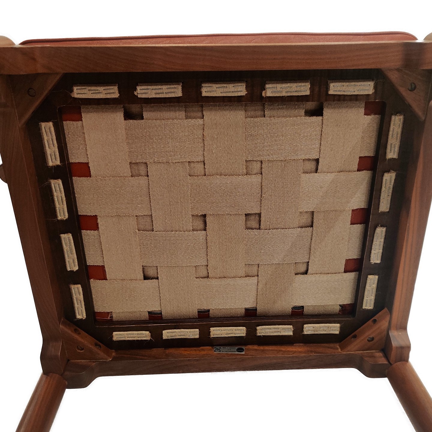 kirsebærtræ med hynde betrukket med rødligt læder.