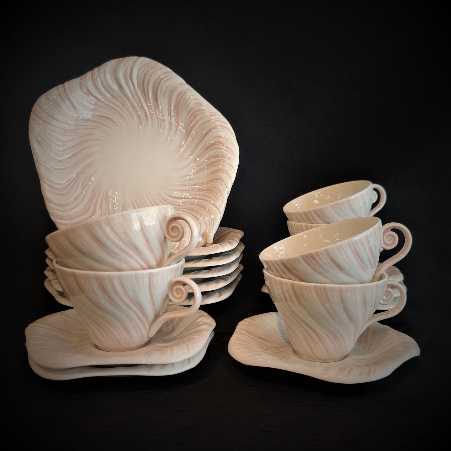 Royal Copenhagen, Arje Griegst; Pink Triton cake plates #14176