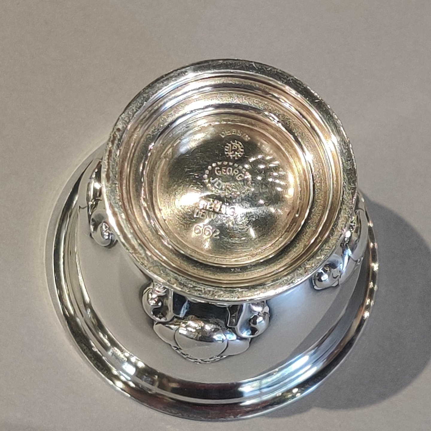 Johan Rohde for Georg Jensen; Konge/Acorn sterling silver egg cup #622. H. 3,8 cm. Diam. 4,6 cm.