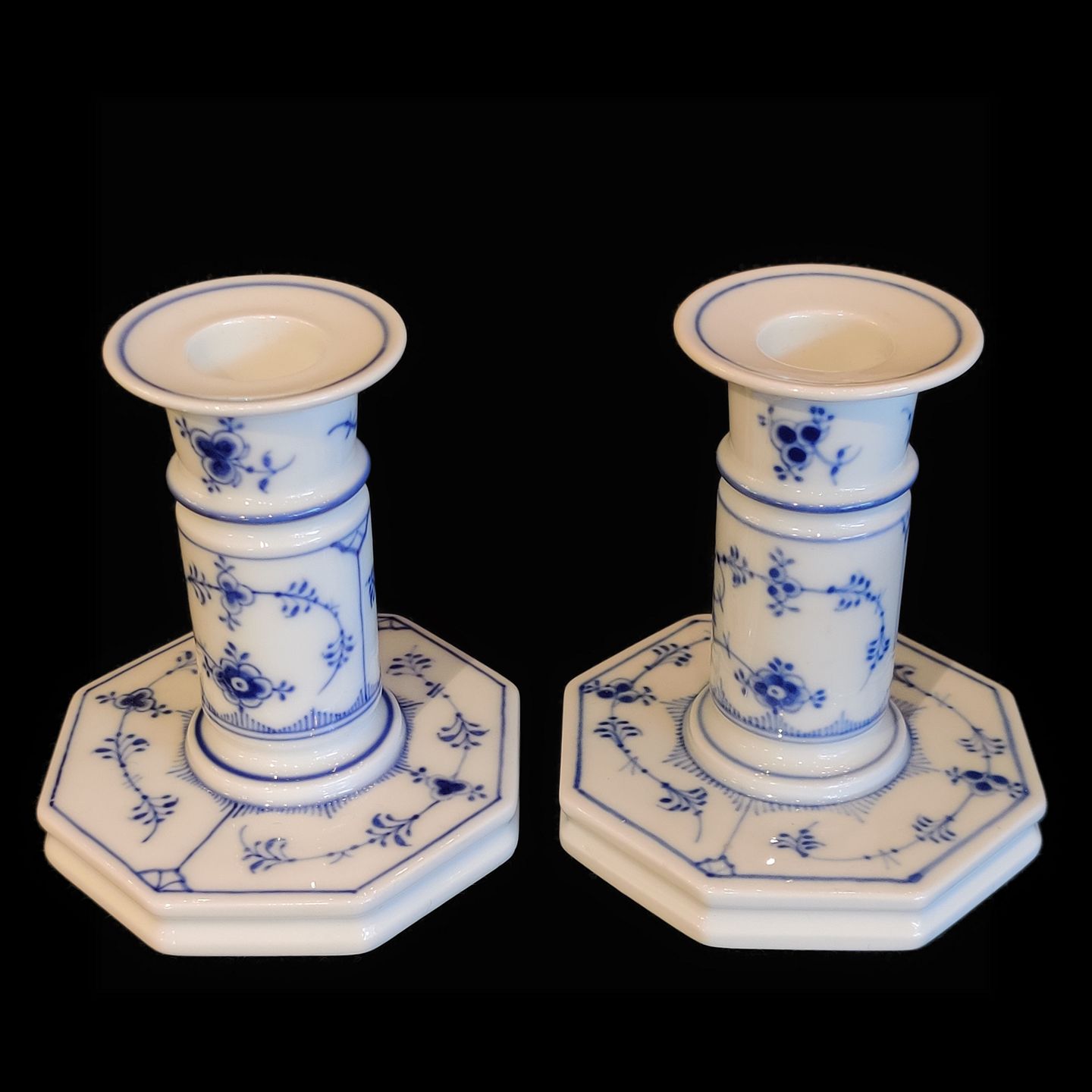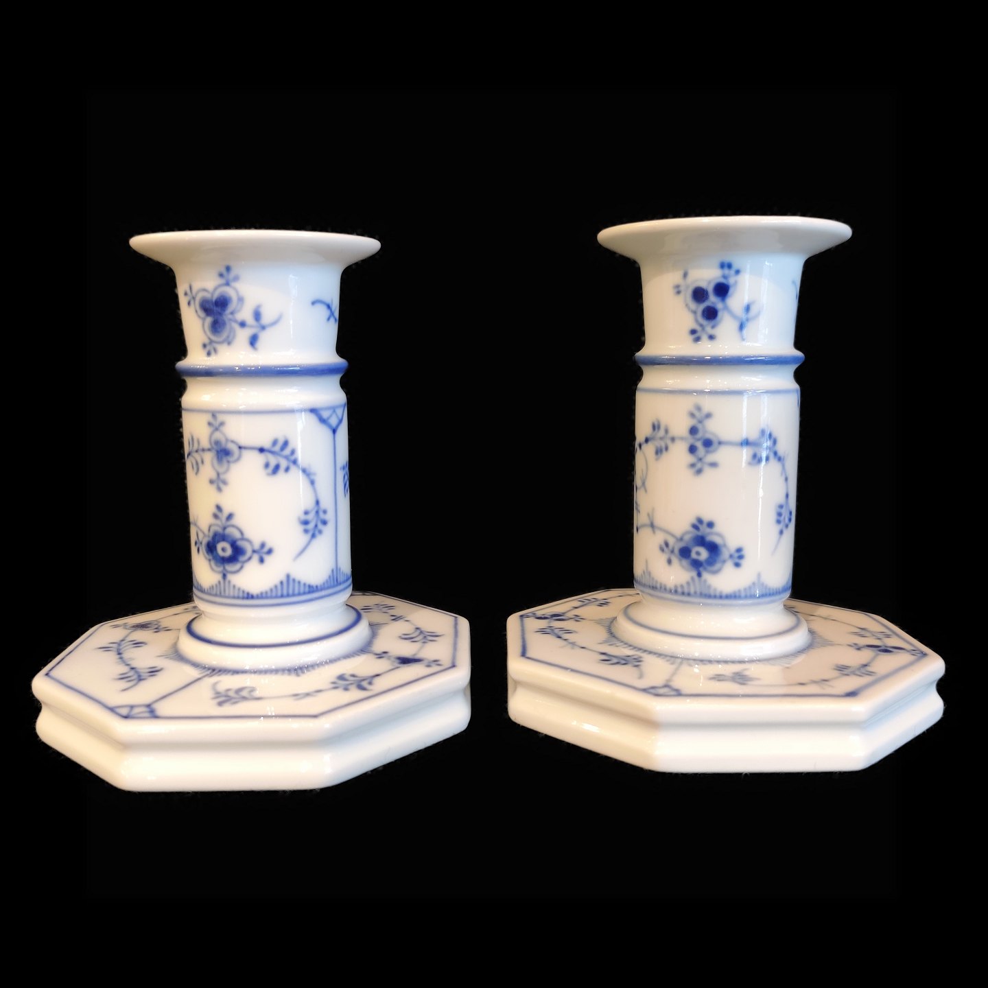 Royal Copenhagen, blue fluted; A pair of candlesticks #3303
