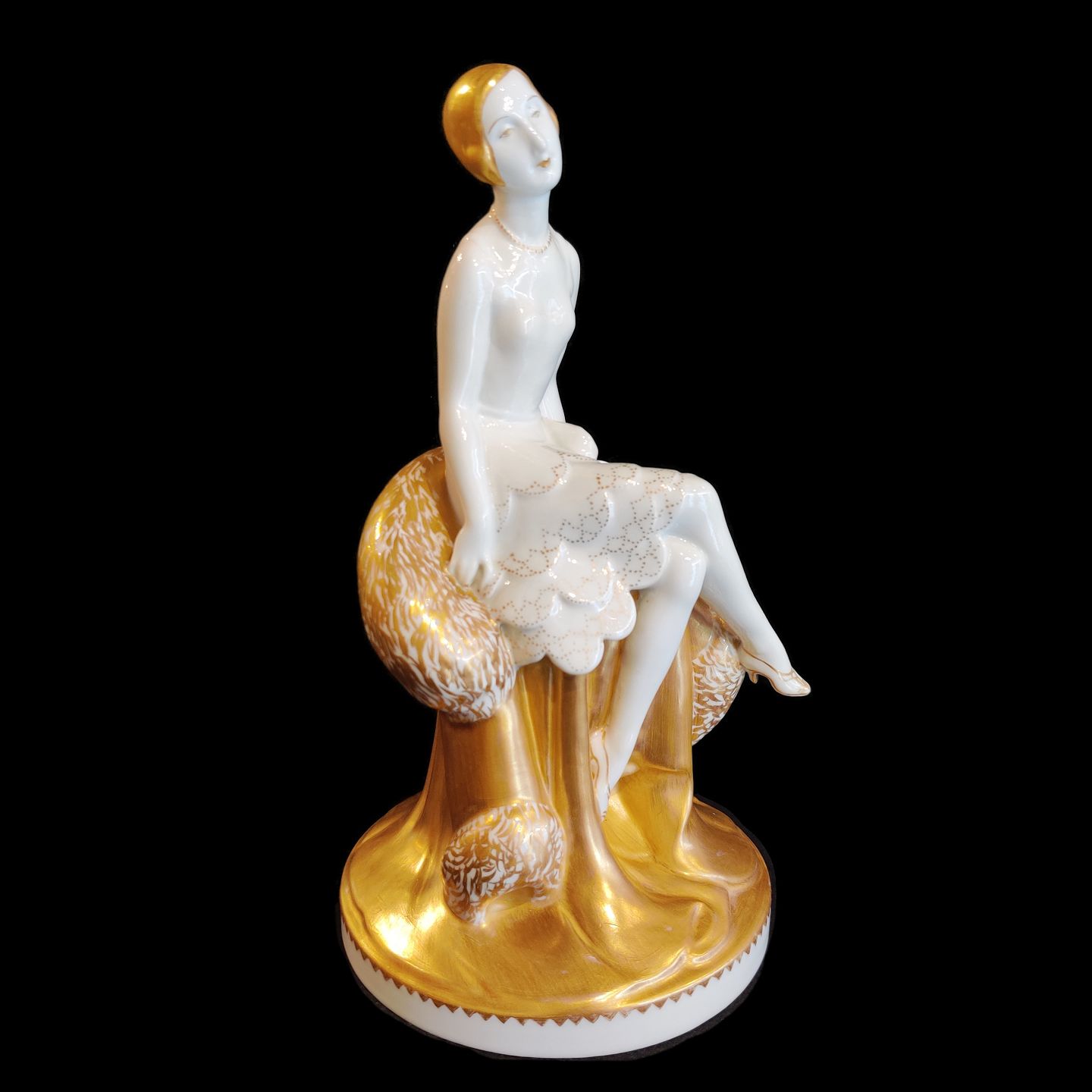 Bing & Grøndahl; Blanc de chine porcelænsfigur med guld #2112