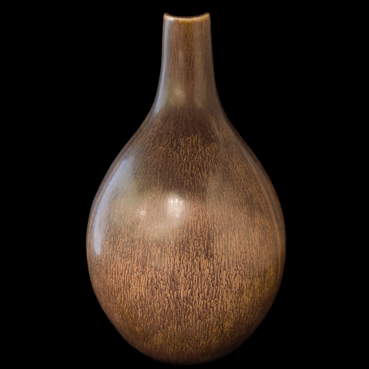 Eva Stæhr-Nielsen for Saxbo; Spaltekande i stentøj dekoreret med brun glasur #64. H. 23 cm.