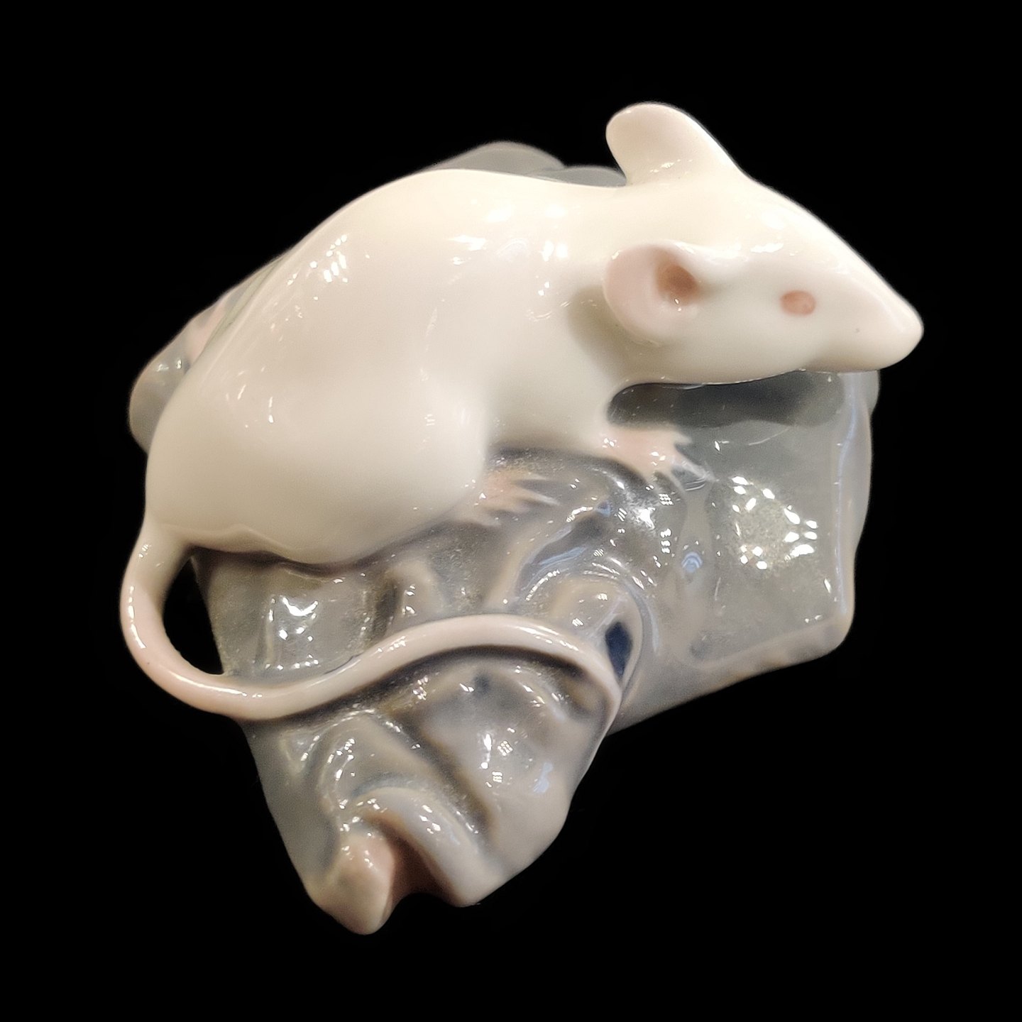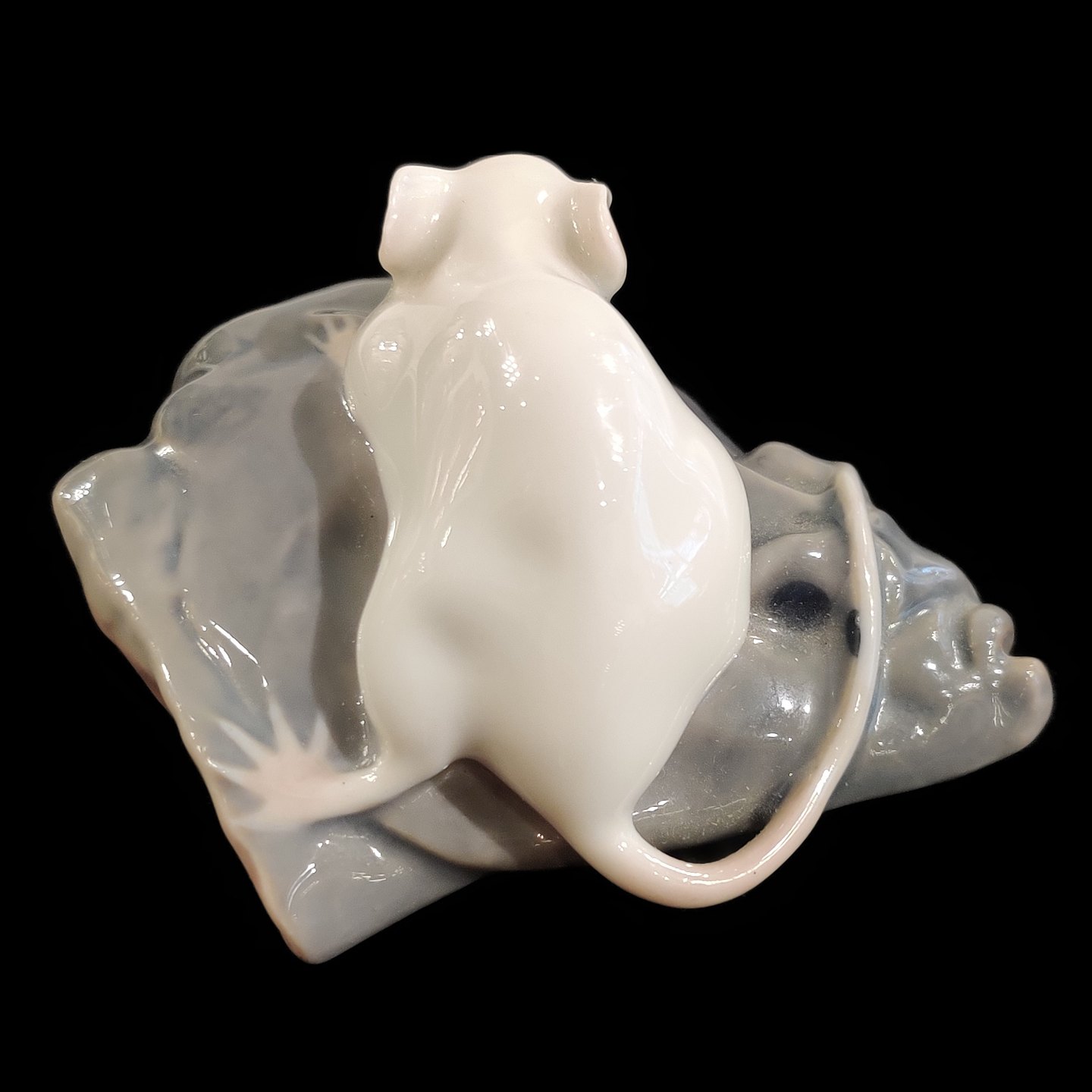 Royal Copenhagen; A rare figurine of porcelain, a mouse on a fish head #513