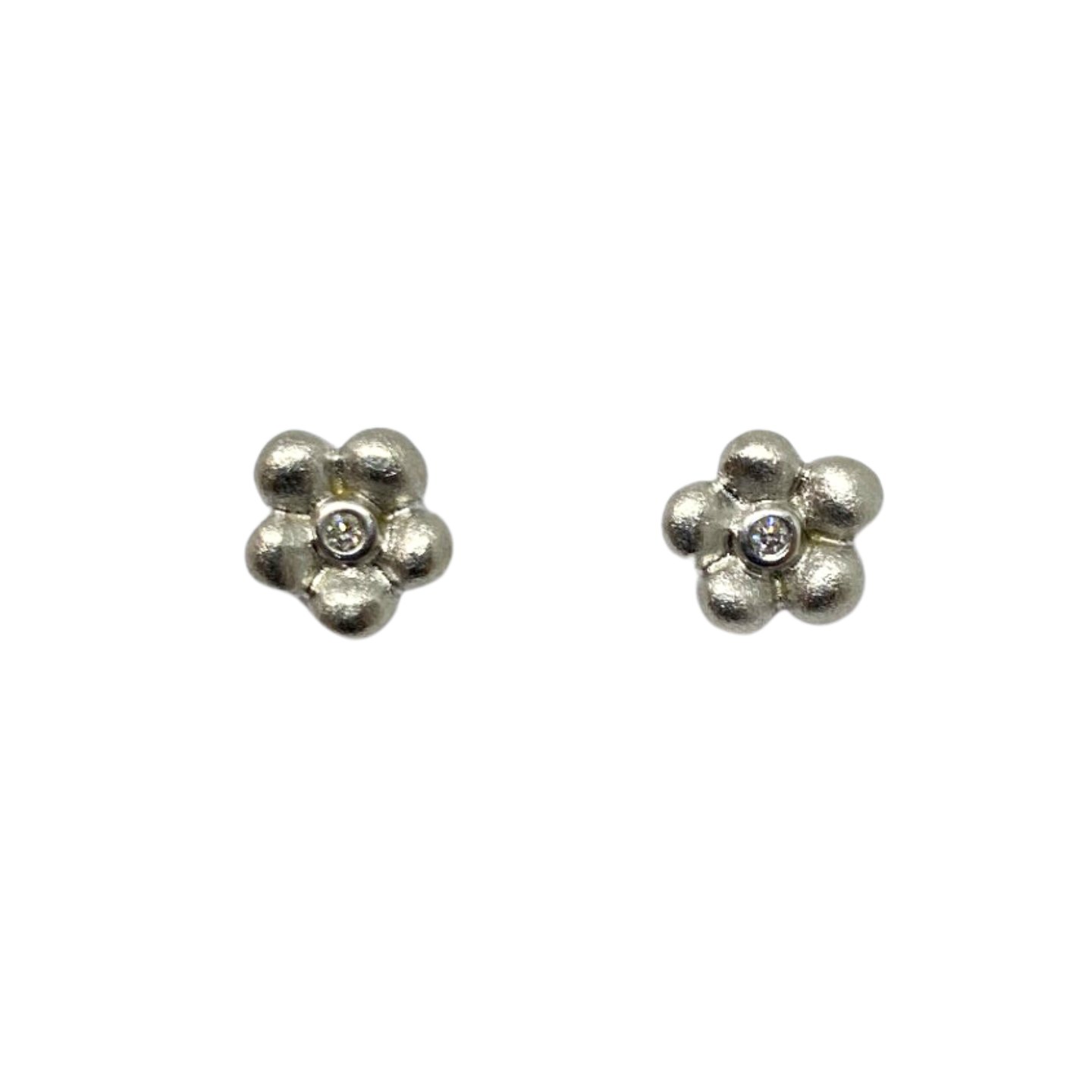 Ole Lynggaard blomster ørestikkere i 18 kt. hvidguld m. diamanter, 0,06ct (2 x 0,03ct).