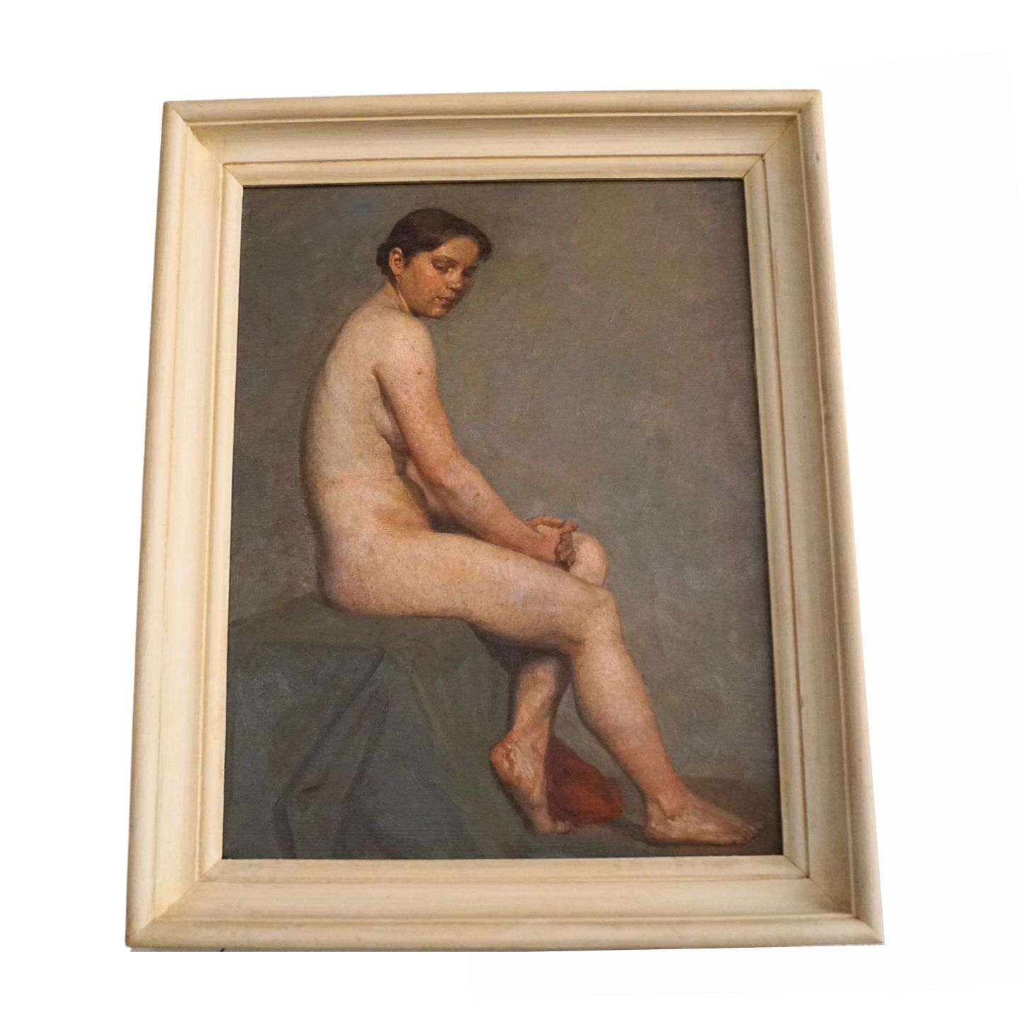 Jes Jacobsen; Opstilling med ung kvinde, olie på lærred
